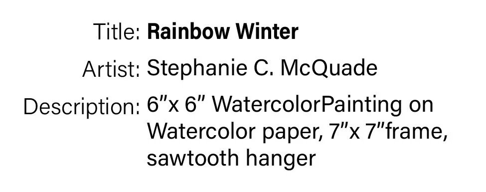 Teaching was another bright spot. Stephanie’s in-person classes at the Lakes Region Art Gallery, launched in late 2024 with Watercolor for Beginners and Watercolor on Canvas, continued successfully through 2025. These were joined by three well-received additions: Intermediate Watercolors, Introduction to Pastels, and the newest offering, Watercolor Workout. The Workout class—requested by returning students—serves as a confidence-building bridge between beginner and intermediate levels, reinforcing fundamentals while encouraging growth.