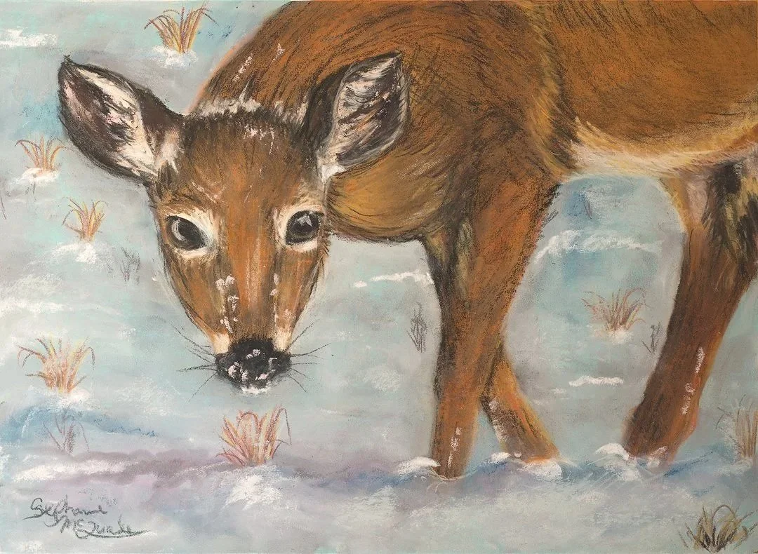 Pastel allows color to be built gradually, layer by layer, echoing the softness of snow itself. Gentle pressure and blended edges create a sense of glow, while small shifts in temperature bring life to areas that might otherwise feel flat.