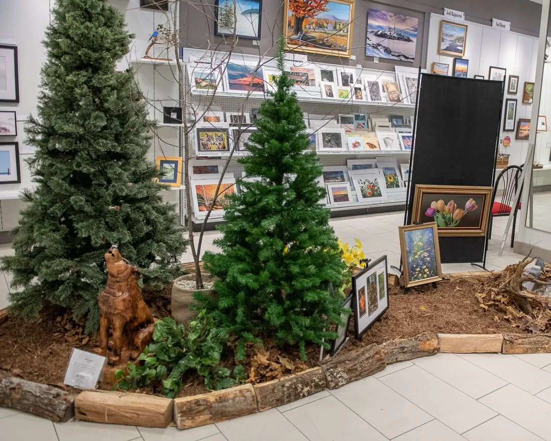 One of our most anticipated annual events is the spring "Art in the Garden – Carved & Cultivated" exhibition—a delightful group show that transforms the gallery into an enchanting indoor oasis. This year's iteration, running through March 15, features an exceptional curation by our gallery artists and dedicated Event Coordinator, Lynn Casey. The space is beautifully adorned with garden-inspired "islands" brimming with vibrant flowers, lush shrubs, sculptures, and thoughtfully placed artworks that evoke the serenity and abundance of a blooming landscape.